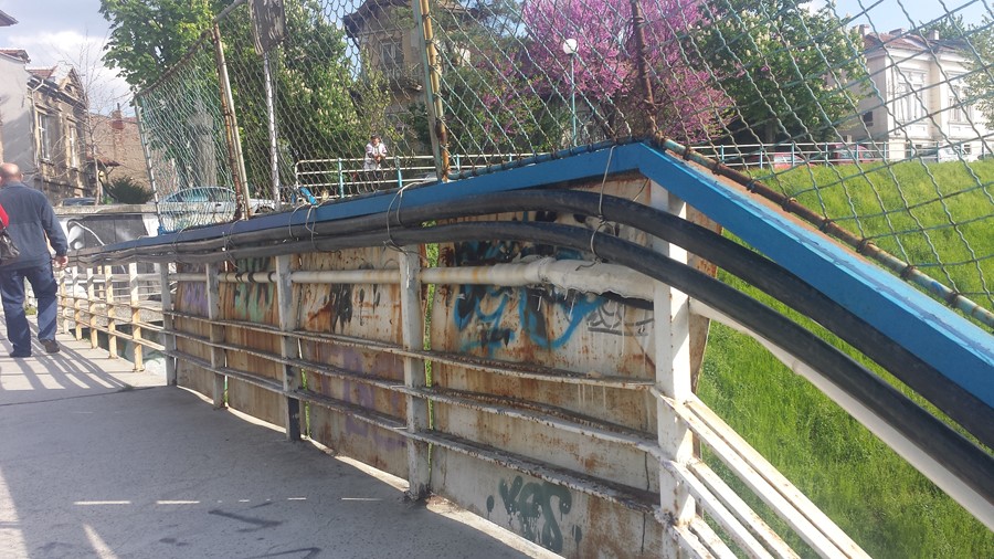 Досега не бях ходил на "търлата", но днес минах от там. Това че не и е там мястото е обсъждано предостатъчно, но това което видях и снимах ме накара да онемея. Силовите кабели които захранват "търлата" са закрепени по перилата на моста. Там където хората се хващат с ръце за да си помогнат когато се придвижват.