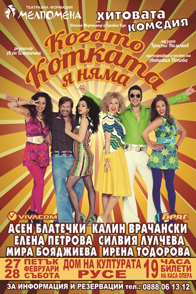 Не пропускайте да гледате на русенска сцена щурата комедия "Когато котката я няма" от най-поставяните английски автори Джони Мортимър и Брайън Кук.
