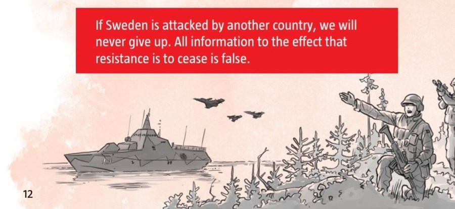 "Ако Швеция бъде нападната от друга държава, никога няма да се предадем. Всяка информация за това, че съпротивата трябва да бъде преустановена, е невярна”, пише в брошурата, изготвена от шведските власти.