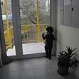 Залепил е носле в стъклото на входната врата в очакване.