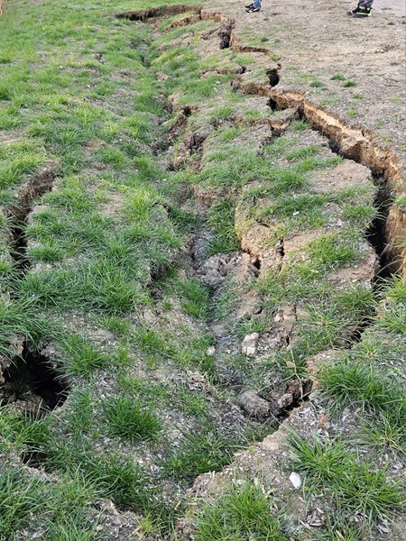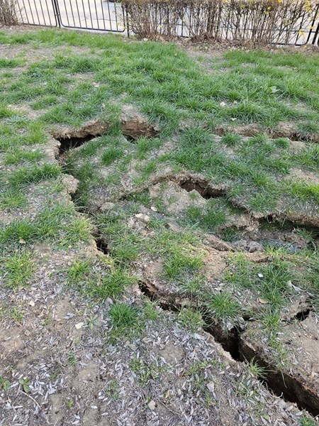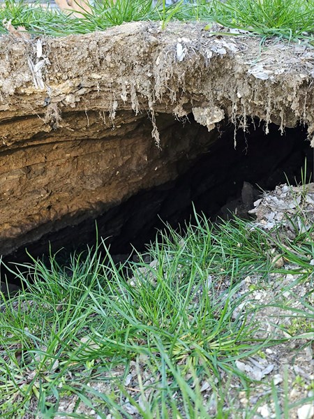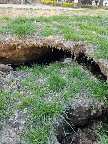 "Голямо пропадане на земна маса. Намира се срещу училище Йордан Йовков на разделителната ивица", съобщи Мима Симеонова в групата "Сигнали към Община Русе" във Facebook.