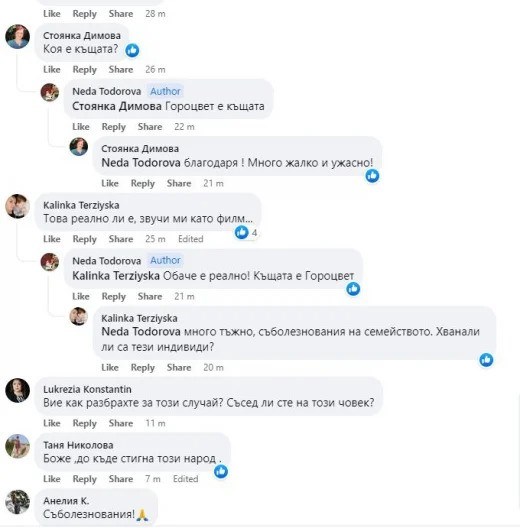 "С прискърбие ви уведомявам, че наш колега, собственик на къща в с. Тръстеник беше удавен в собствения си басейн в неделя, а днес го погребаха. Имал е гости, които в малките часове са започнали да вандалстват и му потрошили къщата. Започнал е скандал, след който гостите си тръгнали. Същата нощ, някои от тях се върнали и удавили колегата в басейна му. Лека му пръст!", гласи текстът на публикацията.