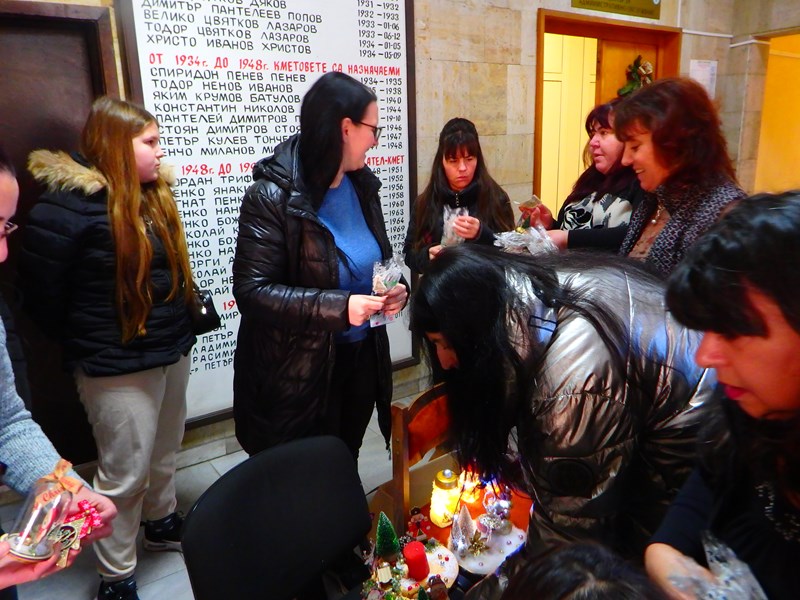 На импровизираната сергия бяха изложени ръчно изработени коледни украшения, играчки, пакетчета с шеговити късмети и домашни сладкиши. Всички изделия са дело на учениците, които влагат не само време и умения, но и много любов в изработката им.