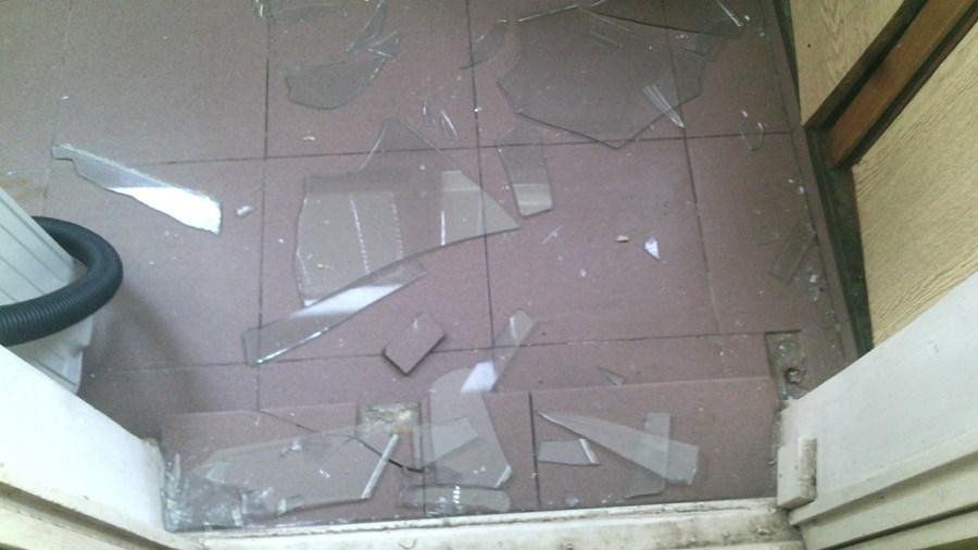 Читател на Dunavmost.com ни изпрати снимка от терасата на жилището си, на която се виждат стъкла от натрошения му прозорец, който се е счупил преди минути.