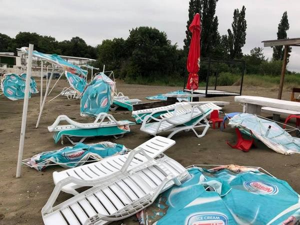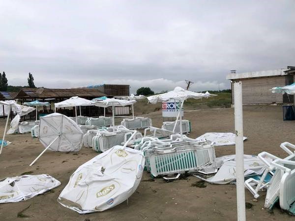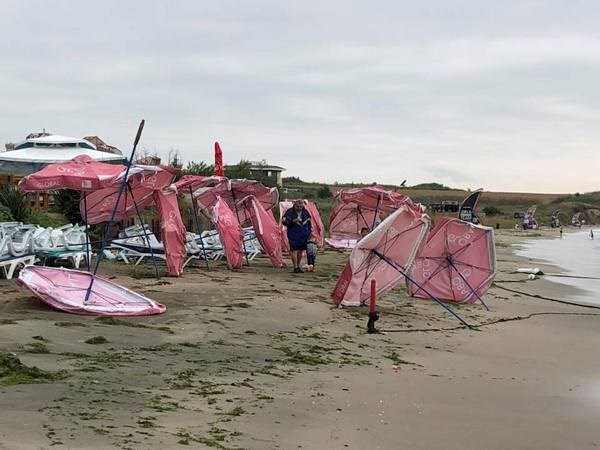 Мощният вятър е бил с над 100 км/час. Стихията е съсипала цялата плажна ивица, разкъсани са шапките на над 80 чадъра, разпорени са и паната на шатрите.