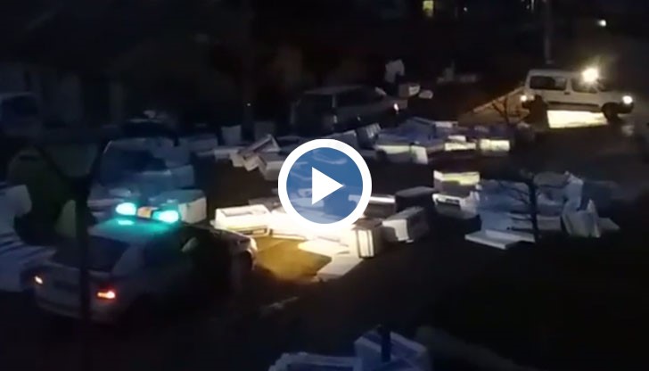 Пакетите се разхвърчаха по цялата улица, като я блокираха.