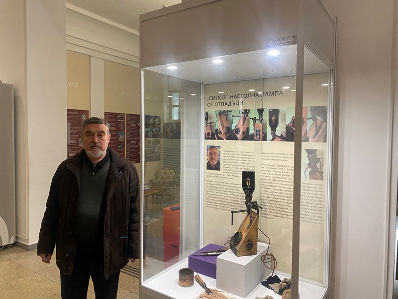 Иновативна арт инсталация, създадена от рециклирани материали, краси фоайето на Регионалния исторически музей в Русе. Творбата "Силоз", дело на артиста Александър Първанов, представлява функционална настолна лампа, изработена от привидно несъвместими елементи.