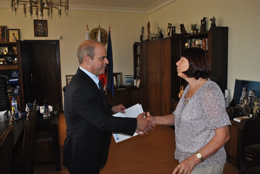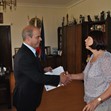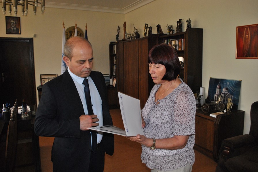На официална среща в Община Русе, г-жа Гицка Харизанова от Синдикат „Образование“ към КТ „Подкрепа“ връчи на кмета Пламен Стоилов грамота за отлично партньорство и социален диалог.