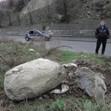 Огромен скален къс падна от скат над Е-79 край Симитли, удари странично лек автомобил, в който пътуват мъж и жена от Благоевград, които оцеляха по чудо, предаде кореспондентът на БГНЕС в региона.