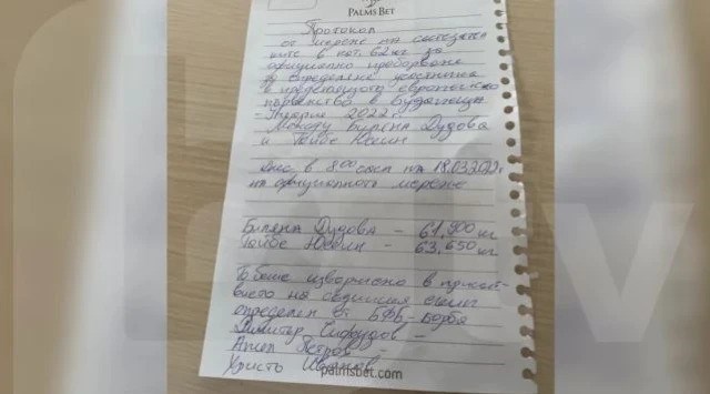 bTV разполага и с протокола, който също потвърждава, че до схватки не се е стигнало, защото Тайбе не е минала кантара.