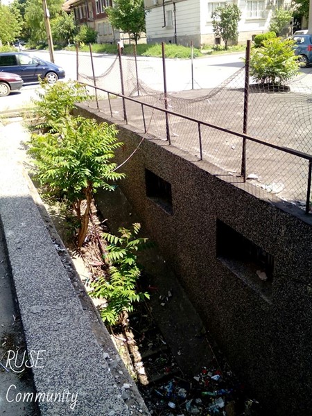 Тук на улица "Св. Георги", на 20 метра от ул. "Борисова", едно дете едва не падна. Този разграден "трап" и мизерията в него, стоят от години.