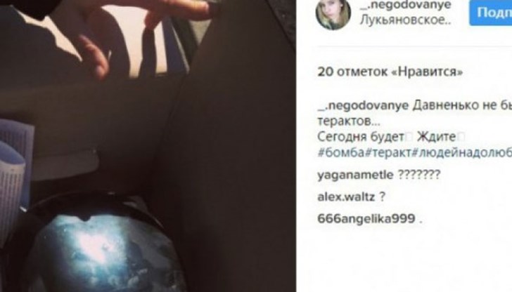 Руско момиче показа в "Инстаграм" бомба няколко часа преди взрива в метрото на Санкт Петербург.
