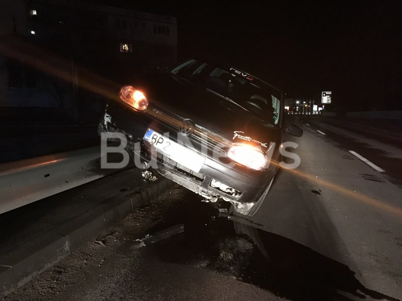 Лек автомобил „Фолксваген Голф“ с врачанска регистрация е скочил на мантинелата, която разделя шосето на влизане към подлеза. Шофьорът на катастрофиралата кола разказа, че със свой приятел се е прибирал към Мездра, когато по време на движение лоста на скоростите останал в ръцете му и колата станала неуправляема.
