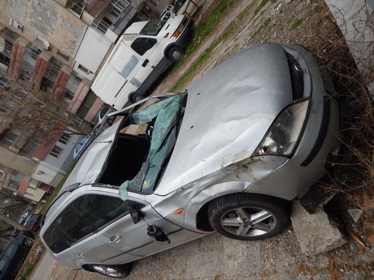 Предното стъкло също е на парчета, следи от сблъсък има дори по тавана на автомобила. Дали е бил блъснат човек или ударът е бил в друго превозно средство, не е ясно за хората, които живеят в близкия блок. Според тях потрошената кола не е собственост на човек от техния или съседните блокове.