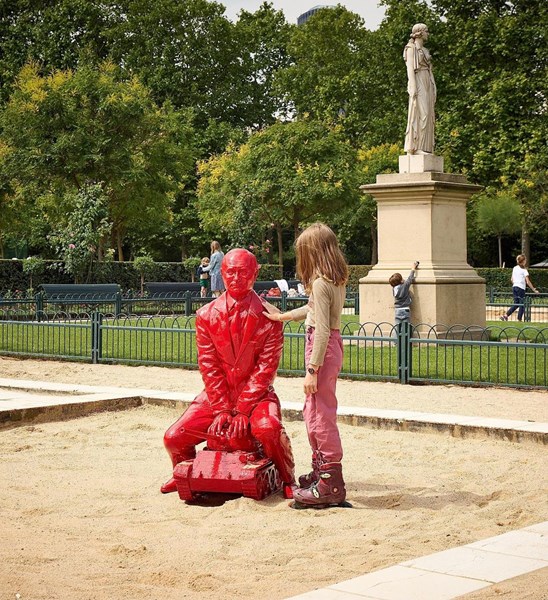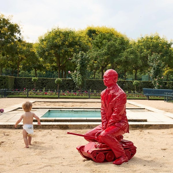 Джейм Коломния е познат със своите яркочервени скулптури, които често поставя на публични места без предупреждение. През април във Франция се появи друга негова скулптура, която също носеше послание против войната - дете, което държи пушка, но с роза вместо цев.
