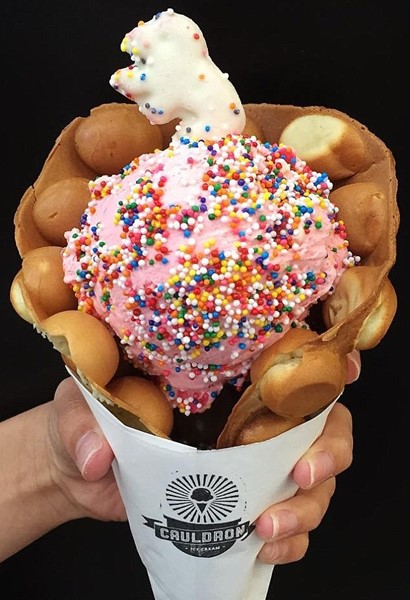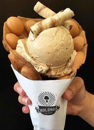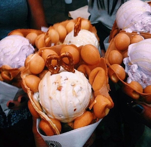 „Пухкавата фунийка„, както я наричат, е дело на компанията Cauldron и вече разбива всякакви класации по продажби. Тя всъщност представлява сладка яйчена вафла и има балонена консистенция, която й позволява да изглежда така, както изглежда. Този вид фунийка всъщност възниква в Хонконг и Югоизточна Азия и първоначално е популярна в заведенията за бързо хранене, където се използва за солени ястия.