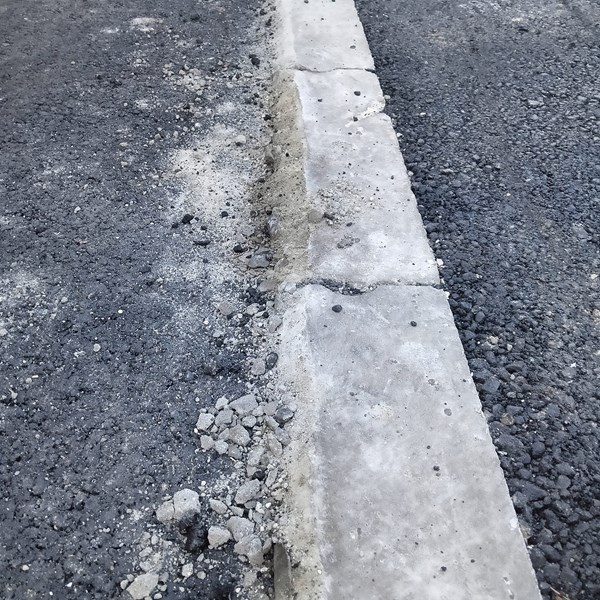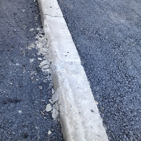 Има ли бетон в бордюрите, които се изграждат при ремонта на улици, пита русенец в социалната мрежа. В публикацията му са приложени снимки на разтрошени, я някои вече превърнали са на прах елементи от уличното платно. Мястото е улица "Н. Й. Вапцаров" в Русе.