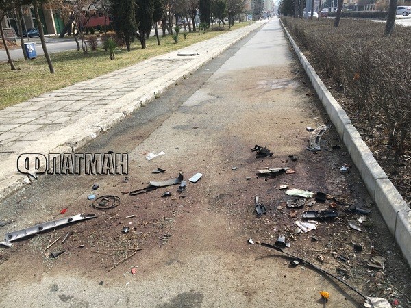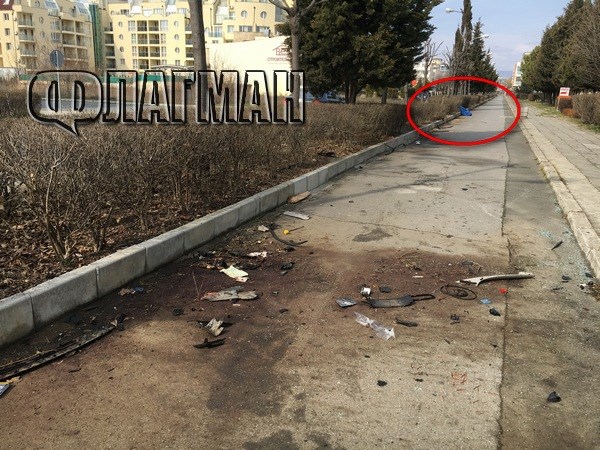 На главния път в Слънчев бряг следите от кръв седят вече трети ден. Множество начупени стъкла, хвръкнали фарове и калници стоят още на пешеходната алея в най-големия български курорт. Колата е цялата потрошена, капакът е на нацепен на три, а двата еърбега са окървавени.