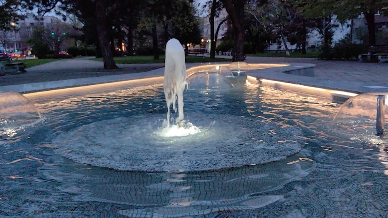 Съоръжението е изцяло обновено с мраморна облицовка, водни дюзи и нощно осветление