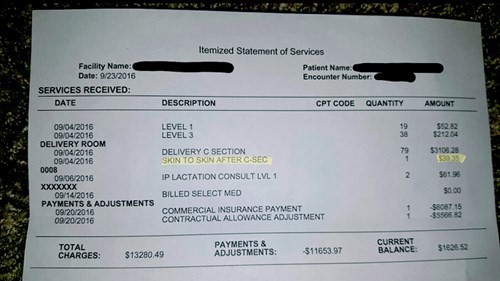 Гордите родители на бебе, което наскоро се е родило с цезарово сечение в американска болница, се изумили когато им била изпратена сметката за държане на бебето в прегръдките.