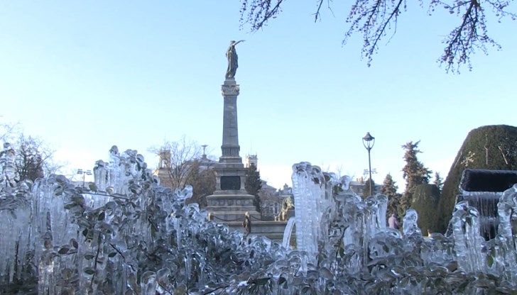 Технически дефект е причината за декора на "Леденото кралство" в градската градина на Русе. Минусовите температури запазиха атрактивните фигури, образували се вчера върху дърветата и храстите, но пък притесниха русенци, че ледената обвивка може да унищожи растителността.
