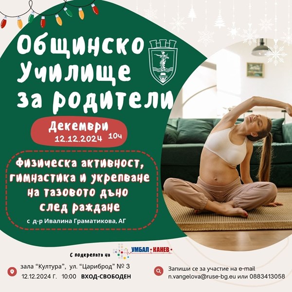 Общинското училище за родители в Русе организира две безплатни лекции, посветени на следродилния период. Събитието ще се проведе на 12 декември (четвъртък) от 10:00 часа в зала "Култура" на улица "Цариброд" 3.