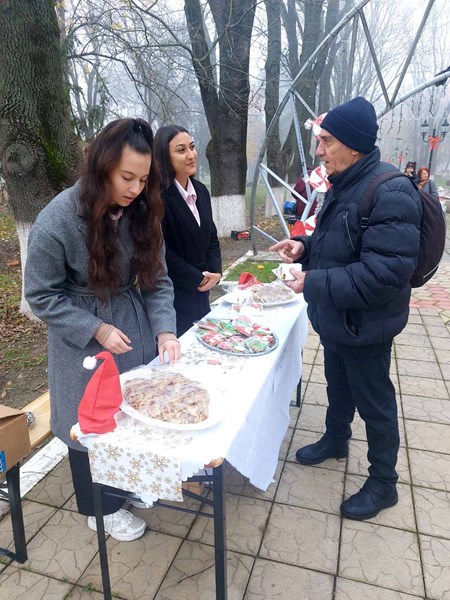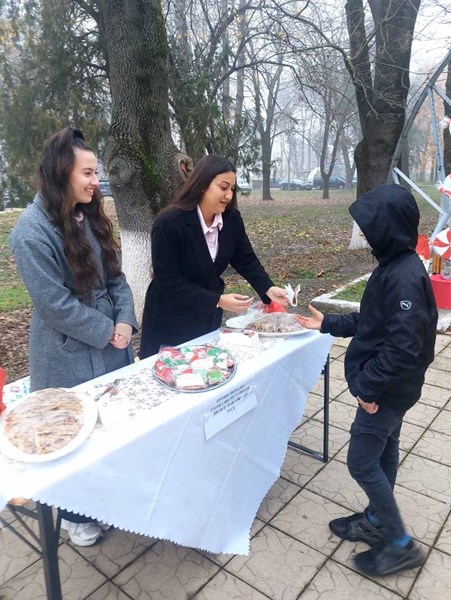 Освен солените изкушения, учениците представиха и сладкарските си умения. Щандът на училището беше отрупан с традиционни коледни сладки с мед и джинджифил, декорирани с фина украса от фондан. Иляйда Феим и Ебру Реджеб от 12 "А" клас посрещаха посетителите с усмивка и подаряваха от празничните лакомства.