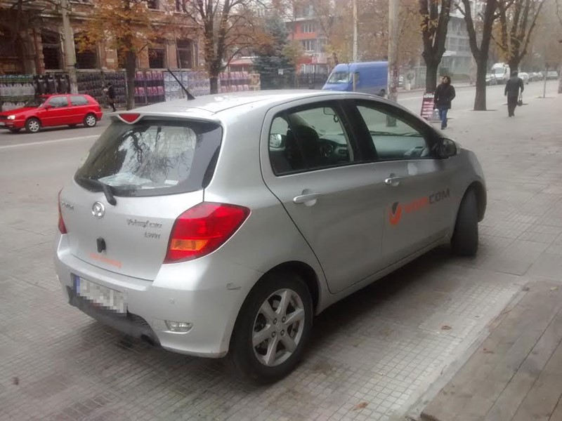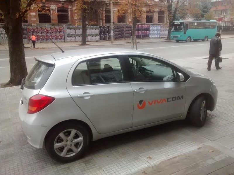 Служебна кола на "Виваком" най-спокойно се качи на тротоара на ул. "Борисова" точно пред 2-ра поликлиника, поразходи се малко по него, паркира си по средата на тротоара и 4-ма служителя на "Виваком" си излязоха да си купят закуски.