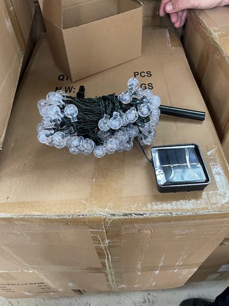 Съгласно предоставените от превозвача документи, товарът е представлявал групаж от Китай с крайна дестинация Германия. След внимателно разтоварване и проверка, митническите служители са установили наличието на 3374 текстилни изделия (дрехи), 2520 калъфи за седалки на автомобили и 800 соларни LED лампи, които не са били декларирани и за които липсват необходимите документи за произход.