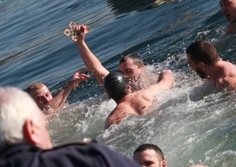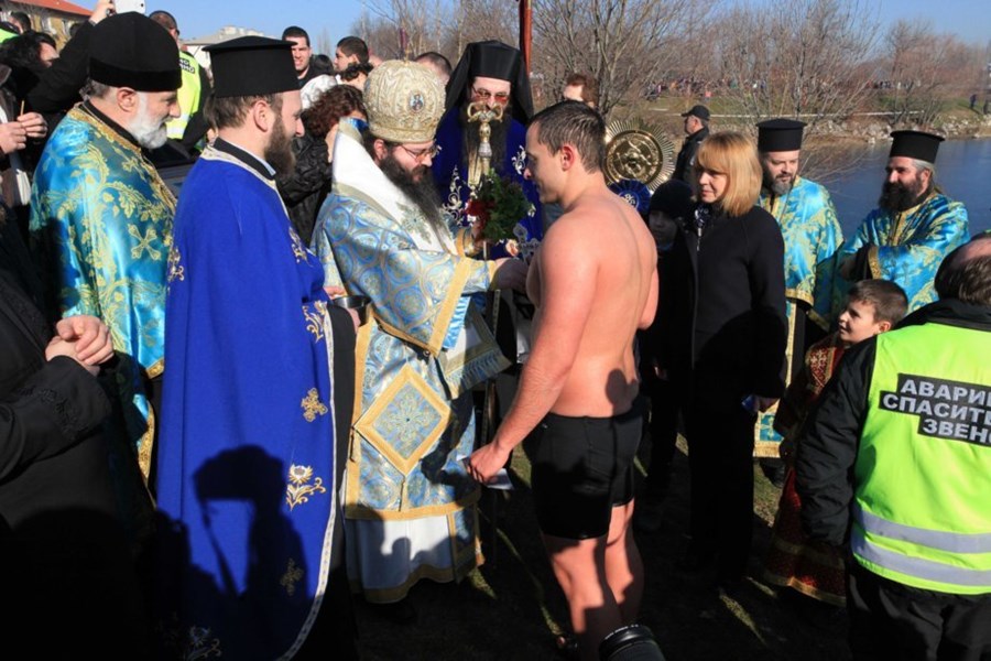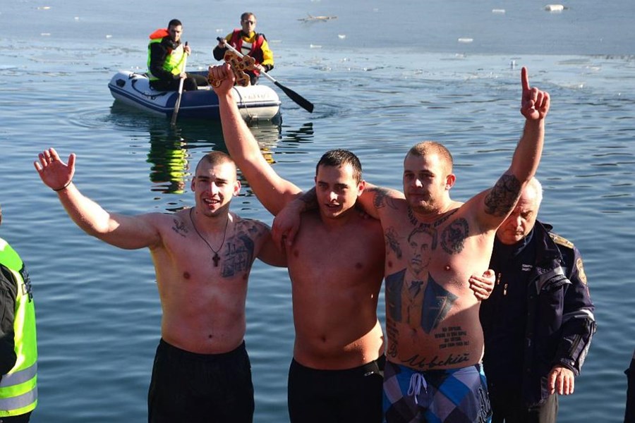 61 смелчаци се включиха в надпреварата за спасяване на кръста от водите на езерото в столичния квартал „Дружба“. Най-възрастен беше 77-годишният Борислав Бранков, който го прави вече 10 години, а най-младият участник беше 19-годишният Денис Георгиев.