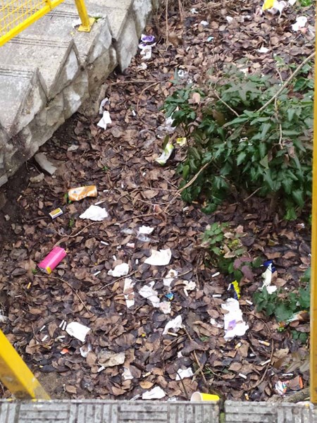 "Прилежащите на търговския обект площи не се почистват изобщо от служителите на магазина и този проблем е от години. В момента мястото, покрай което минават хиляди хора непрекъснато, прилича на сметище", споделя авторката на снимките.