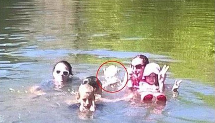 Смразяващ кадър на къпещи се хора, зад които се появява главата на удавено преди повече от век дете