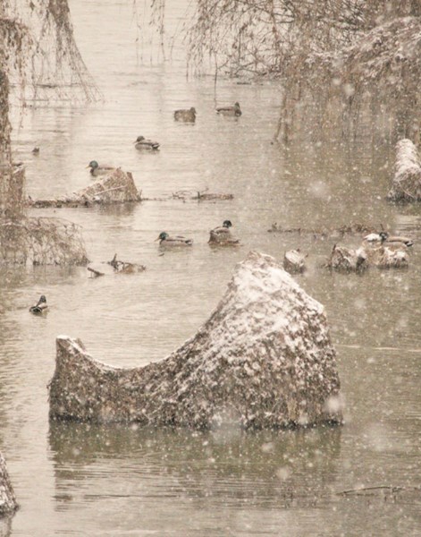 Постоянните обитатели на района - дивите патици, пък плуваха между природните скулптури в импровизираната изложба.