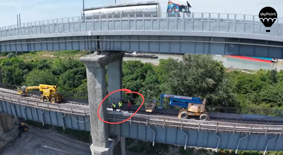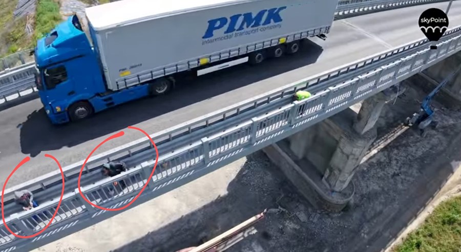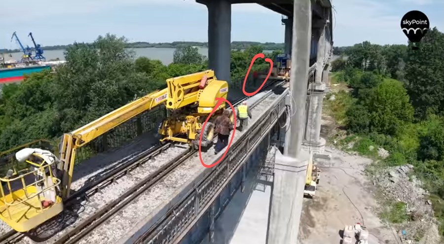 "Работници без предпазно облекло, които боядисват оградното съоръжение," "работник без каска и предпазни очила, който извършва къртачна дейност" и "работници без предпазно облекло и каска, които се намират върху жп линията под автомобилния път, при голяма опасност от падане на части от моста поради вибрацията".