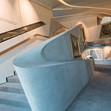 Единствено входът се вижда отвън, а стълбищата, водещите до трите различни нива на изложбените зали, напомнят на водопади, спускащи се по планинските склонове.