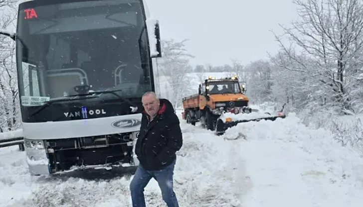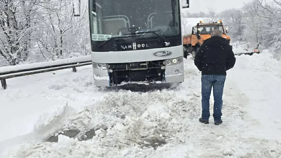Български автобус с 25 пътници, пътуващ за румънската столица Букурещ, закъса в снега край свищовското село Вардим тази сутрин. Докато държавните институции твърдят, че ситуацията е под контрол, реалността на терен показва сериозни проблеми със зимното поддържане на пътищата във Великотърновска област.