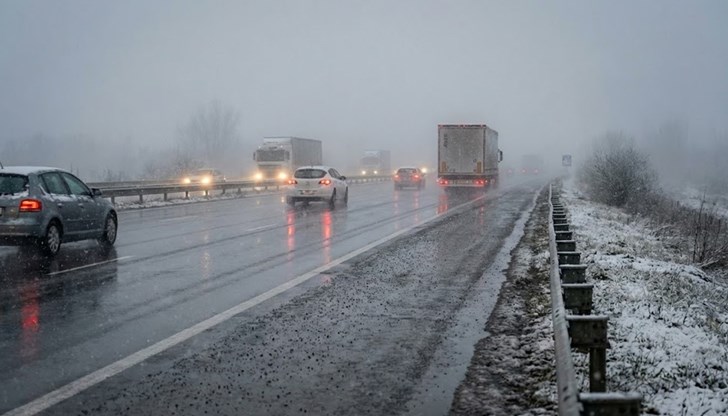 Сняг, дъжд и мъгла затрудняват движението по пътищата в страната
