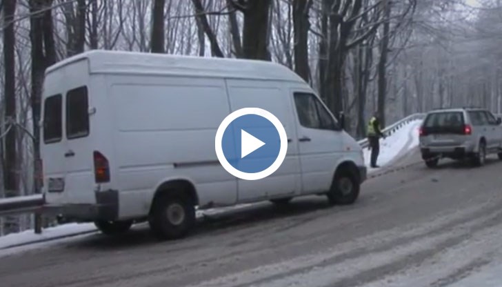 Движението вече се контролира от пътни полицаи. Те помагат на изненаданите от снега водачи. На места пътят е хлъзгав.