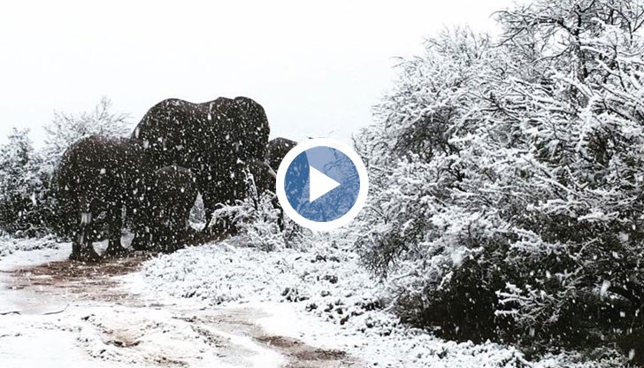 А на кадрите виждаме как се справят животните в тази снежна приказка. Типичните за африканските савани жирафи и слонове си пробиват път в преспите.