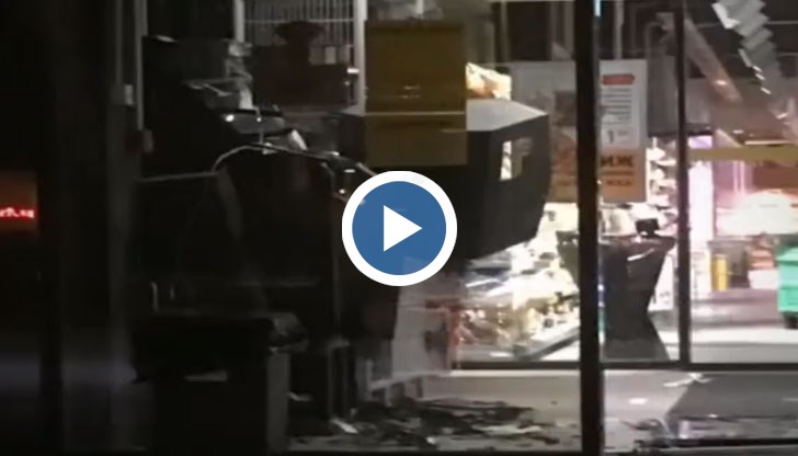 От взривната вълна са нанесени щети на стъклените витрини на магазина, както и на самия банкомат.