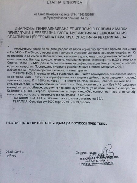 Както можете да видите, той изглежда едно жизнерадостно, усмихнато и лъчезарно дете. И не само изглежда, а е такъв. Истината обаче не спира до тук. Макар и да изглежда напълно здрав, Енис е диагностициран с достатъчно тежко заболяване: генерализирана епилепсия с големи и малки припадъци, церебрална киста, мулкистична левкомалация, спастична церебрална парализа, спастична квадрипареза. Само от прочитането на диагнозата можете да си дадете сметка с какво всеки ден трябва да се справя майката на Ени.