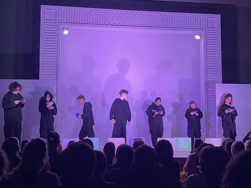 Във фокуса на спектакъла бяха поставени проблемите на днешните младежи в училище и в собствените им семейства, тихият им вик за помощ, който често остава нечут, маските, които си изграждат, за да се скрият, опасностите, които ги дебнат, мракът, който безпощадно ги поглъща и последствията от всички грешни избори, които ги смазват.