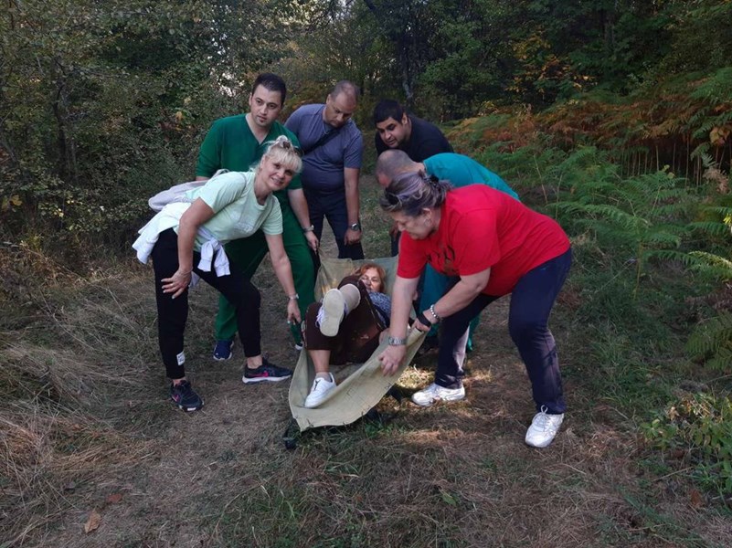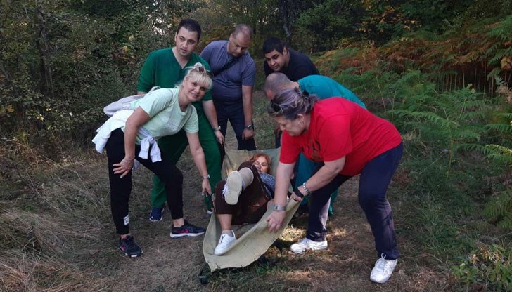 Лекар и шофьор на линейка вървяха пеша 4 км през гората в габровския Балкан, за да спасят пострадала туристка. На връщане те я носиха на носилка. Това съобщиха от Националната асоциация на работещите в спешната медицинска помощ.