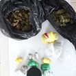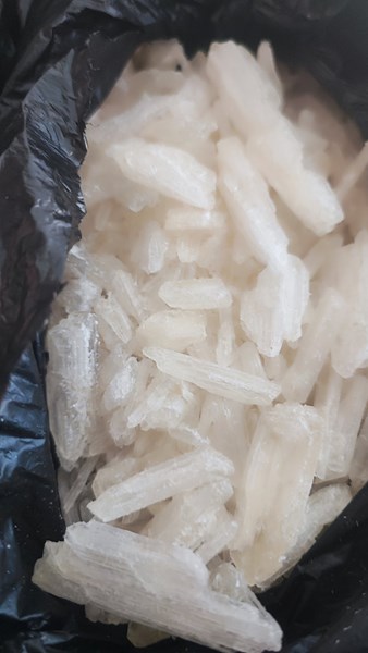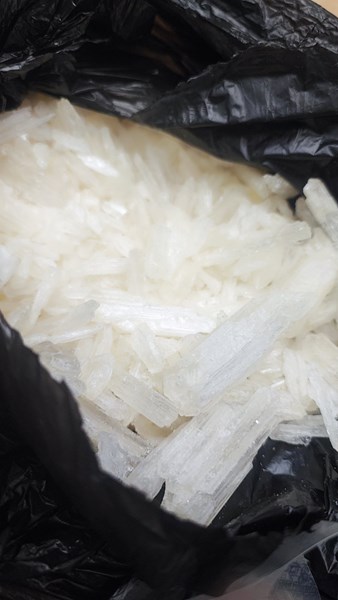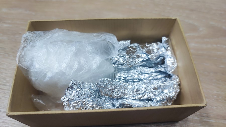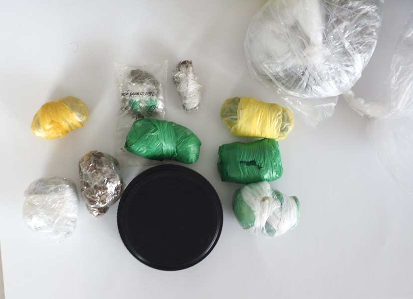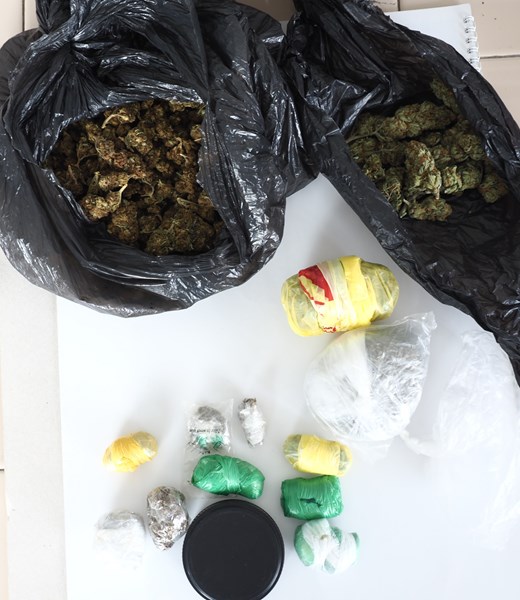 В хода на следствените действия в жилището на 27-годишния мъж са намерени около 50 грама бяло кристално вещество и около 60 грама суха тревна маса. Той сам определил веществата като метамфетамин и марихуана. Мъжът посочил и местоположението на допълнително скрити около 100 грама марихуана в храсти на друг адрес в града.