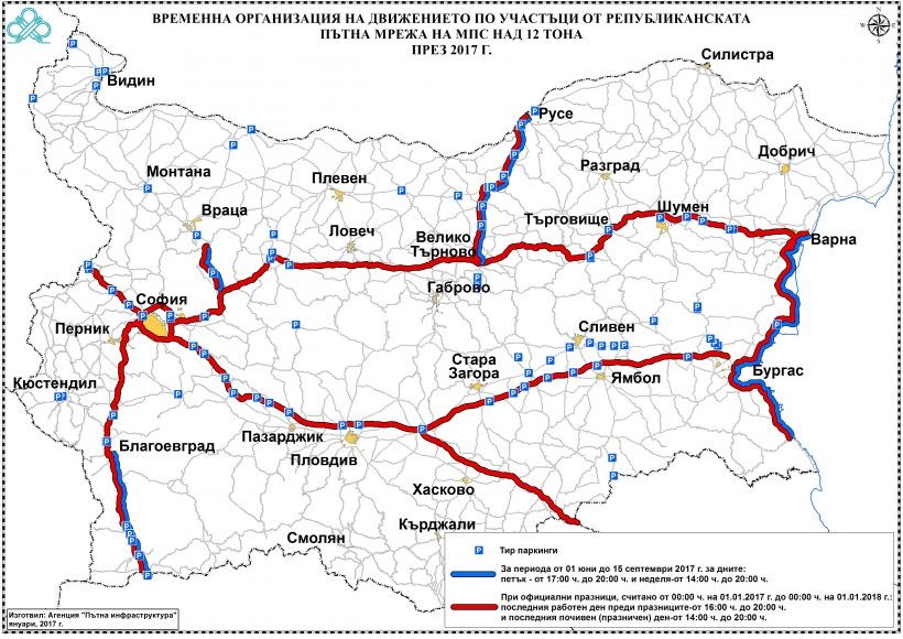 Карта с временната организация на движението по участъците от републиканската пътна мрежа в празничните дни през 2017 г. може да бъде открита ТУК.