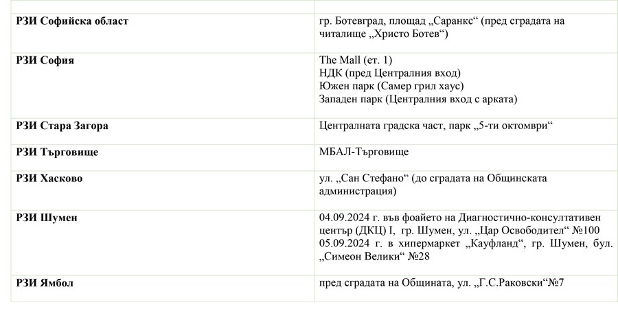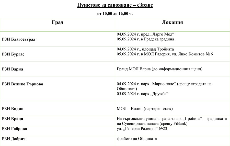 От 4 септември мобилни екипи ще работят в молове и паркове, за да съдействат на всички желаещи да свържат своето здравно досие с мобилния си телефон. Лично министърът на здравеопазването, д-р Галя Кондева, ще посети пункта пред централния вход на Националния дворец на културата (НДК) утре в 13:30 часа, за да се увери, че процесът протича гладко и безпроблемно.