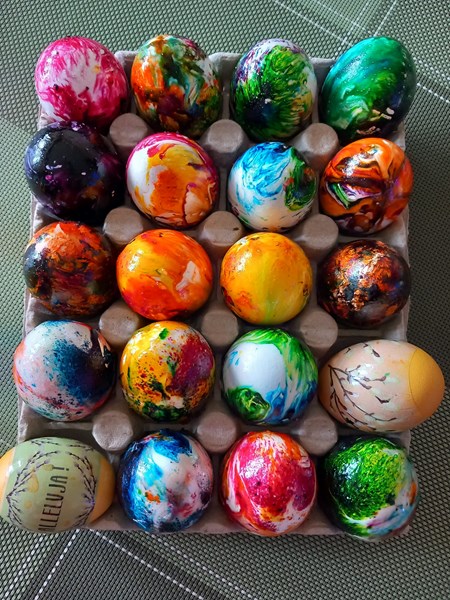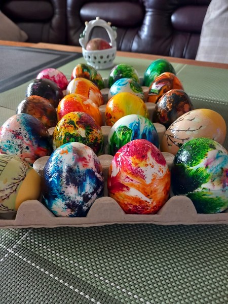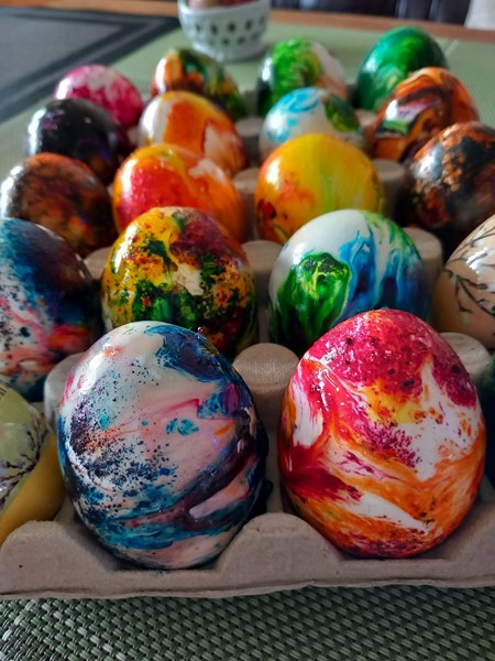 На Велика събота боядисваме яйца за Великден. Всяка домакиня се стреми яйцата да станат красиви и да донесат настроение за празника.