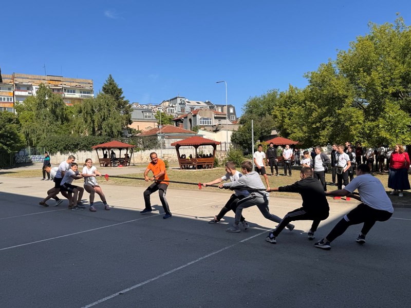 Много емоции сред учениците предизвикаха подвижните игри – теглене на въже и народна топка