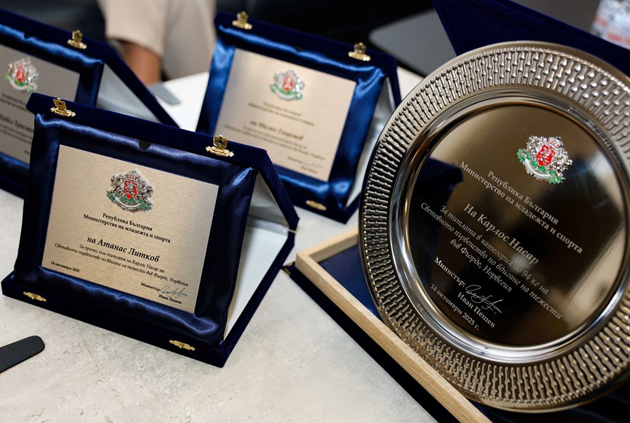 Министърът на младежта и спорта Иван Пешев връчи почетен плакет и парична премия в размер на 115 хиляди лева на световния шампион по щанги Карлос Насар. Българският състезател спечели титлата в двубоя при 94-килограмовите и златен медал в изтласкването на световното първенство във Фьорде, Норвегия, като постави и нов световен рекорд в движението.