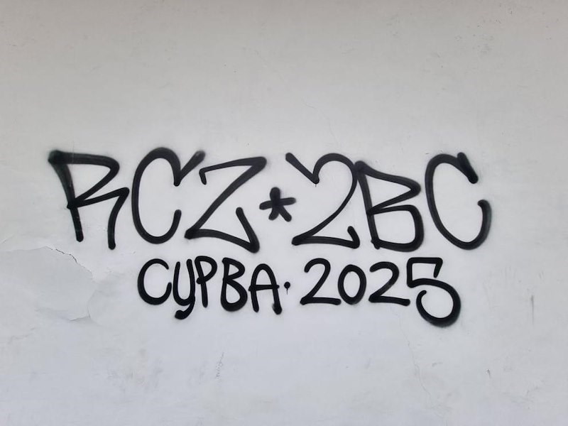 Нарушителите са проникнали през страничен вход и са оставили графити върху прожекционния екран